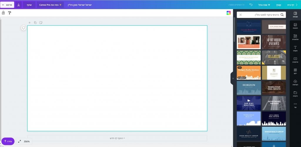 נבחר מבין מגוון כרטיסים ביקור עסקיים המוצעים ומקוטלגים על פי קטגוריות שונות. בדוגמה החלטנו לבחור ב"סוכני נדל"ן".