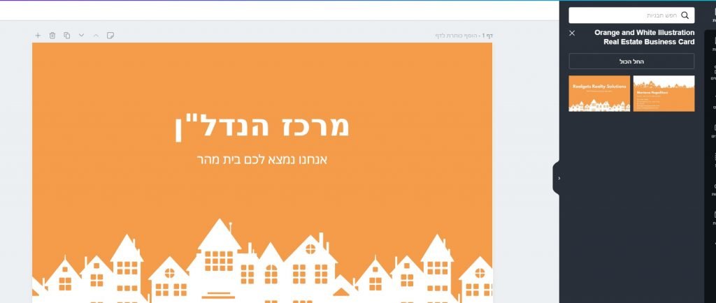 לאחר בחירה בעיצוב כרטיס ביקור, עורך העיצוב יפתח.